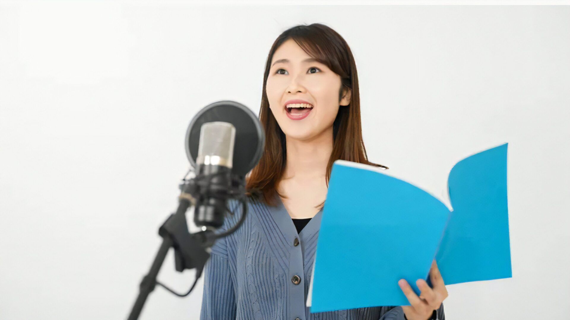 台本やスタジオ機材を使用し、実際の収録現場に近い環境でレッスンを行います。マイク前での立ち方、声の届け方、演技の意図などを、実践を通して丁寧に学べる内容です。